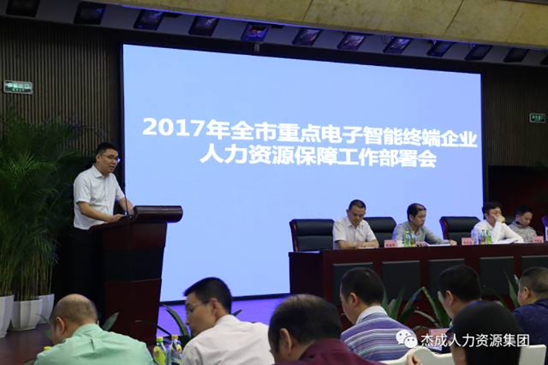 2017年5月25日上午,由重庆市人力资源和社会保障局主办的“2017年全市重点电子智能终端企业人力资源保障工作部署会”在重庆市渝北区创世纪宾馆隆重举行,贝博艾弗森官网人力资源集团下属子公司--重庆思博人力资源服务有限公司作为重庆市人力资源服务机构代表参加了此次会议,集团总裁乔聪玲先生在会议上作出精彩发言。