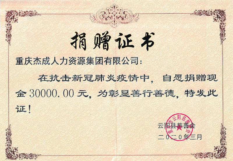 自2011年成立以来,贝博艾弗森官网集团一直将公益放在经营理念中的重要位置,每年都会在力所能及的范围内为慈善事业尽绵薄之力。2020年,在疫情突袭的影响下,贝博艾弗森官网集团率先为武汉捐赠善款10万元,用于一线的抗疫工作,后又为云阳的抗疫工作捐赠善款3万元;在全国复产复工的关键时段,贝博艾弗森官网集团响应号召,组织了一系列“公益招聘会”,在严苛的防疫保护下面试雇员达1500人,有效保障了企业在复工时期的人力输送。