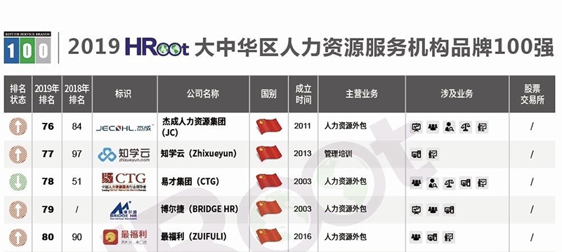 随后,中国领先的人力资源媒体公司HRoot发布《2019大中华区人力资源服务机构品牌100强榜单与白皮书》,贝博艾弗森官网集团再次上榜,位居76名。该榜单是全球唯一一份对人力资源服务机构品牌进行排名的榜单,贝博艾弗森官网集团蝉联榜单三年,名次不断攀升。