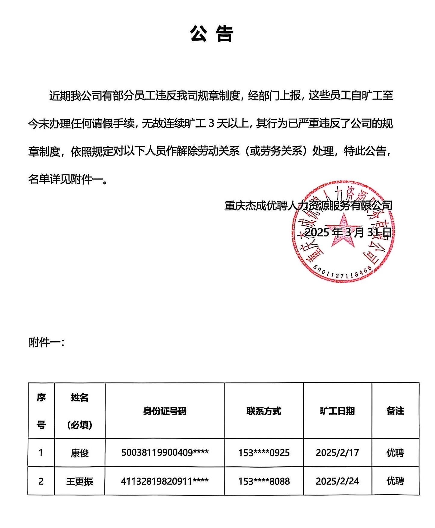 20260402公告【贝博艾弗森官网优聘】