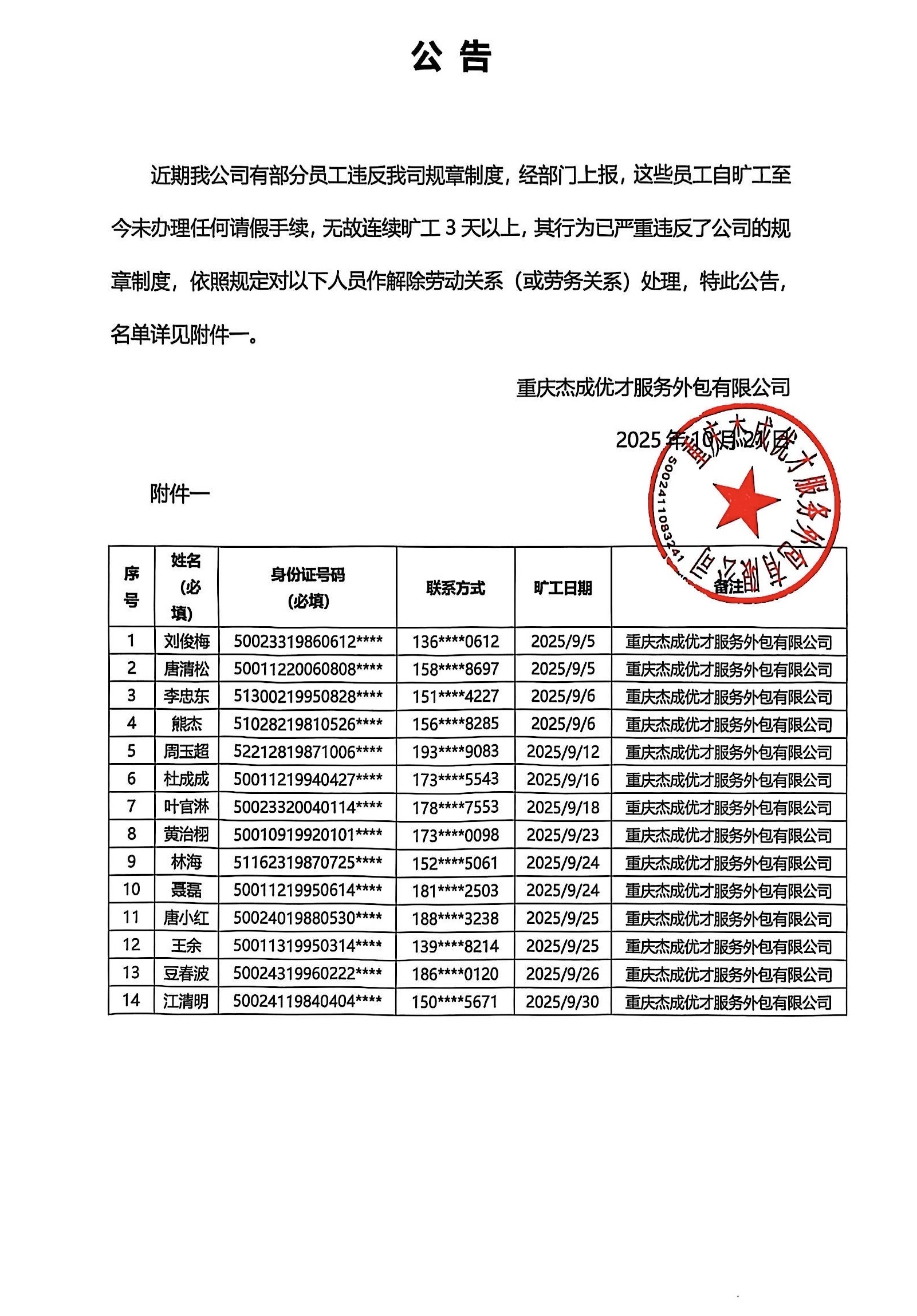 20251002公告【贝博艾弗森官网优聘】