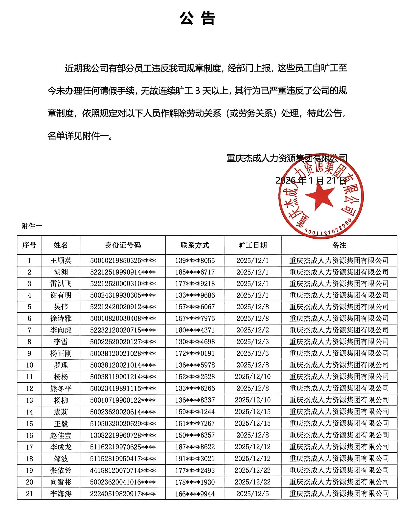20260201公告【贝博艾弗森官网优聘】