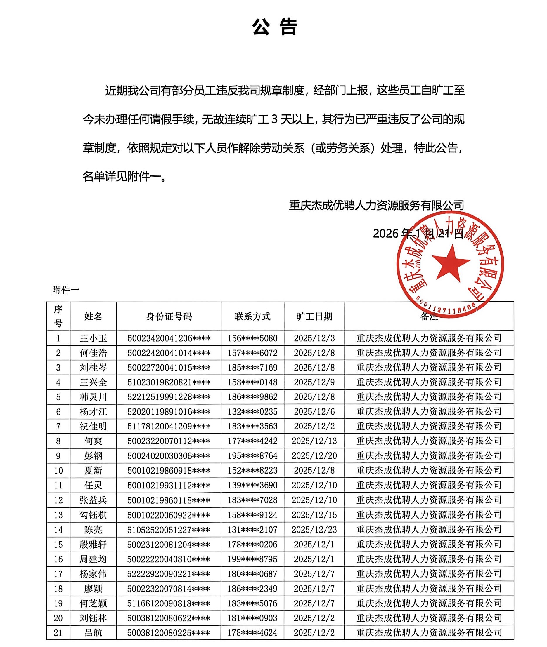 20260201公告【贝博艾弗森官网优聘】