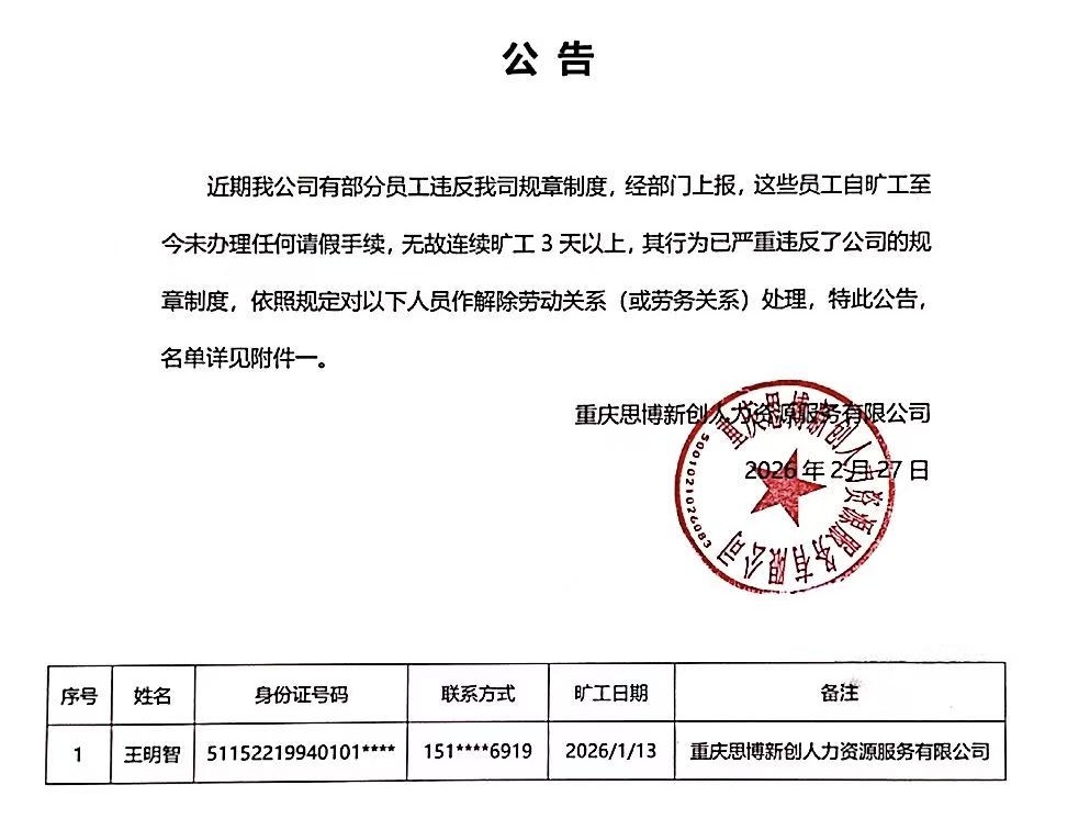 20260302公告【贝博艾弗森官网优聘】