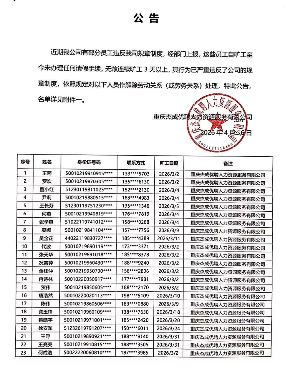 20260402公告【贝博艾弗森官网优聘】